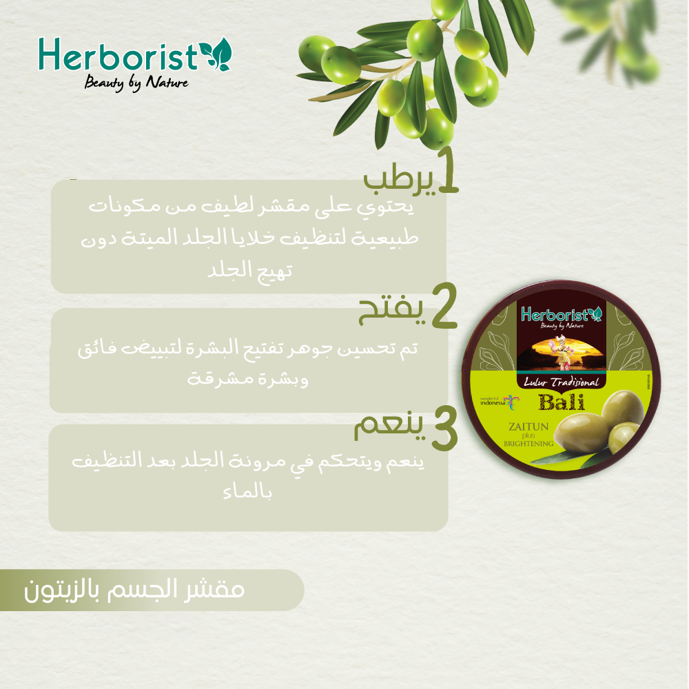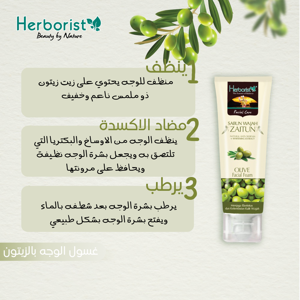 يحتوي على مستخلص زيت الزيتون الغني بفيتامين هـ ومضادات الأكسدة. صابون Herborist Olive Bar ينظف البشرة ويرطبها. غني أيضًا بخلاصة التفتيح لتفتيح البشرة. مناسب لجميع أنواع البشرة.